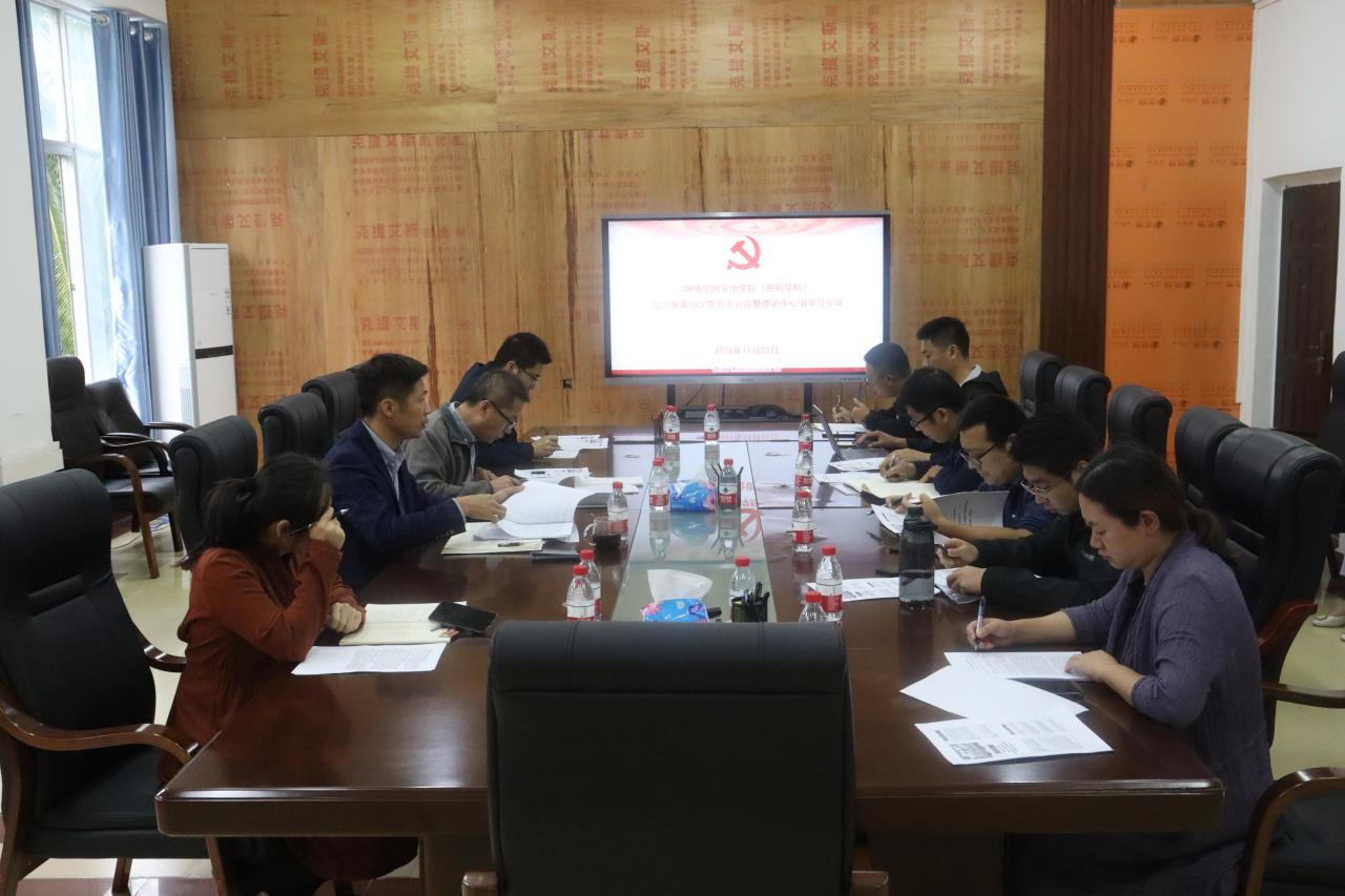 2021年11月23日,pp电子游戏官网召开理论学习中心组(扩大)会议,专题学习传达党的十九届六中全会精神。学院领导班子成员、党委委员、各系室中心负责人等参加了学习会议。会议由学院党总支书记陈广锐主持。