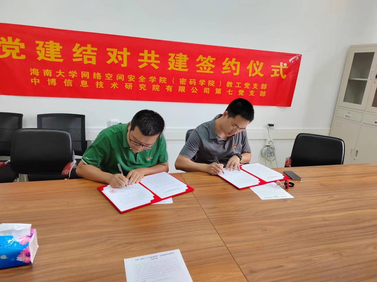 2022年7月4号, pp电子游戏官网教工党支部与中博研究院第七党支部在pp电子游戏官网320开展党建结对共建签约仪式。