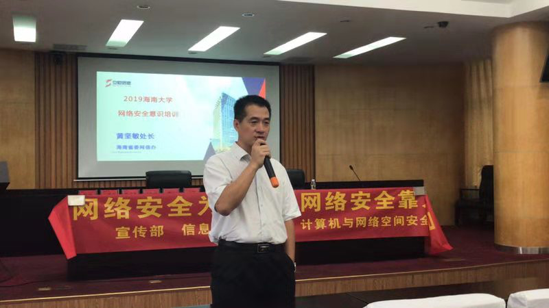 在本次网络空间安全宣讲活动中,我们有幸邀请到了海南省委网信办网络安全处处长黄坚敏、安恒信息技术股份有限公司主任陈宇乾、奇安信渠道技术总监田海燕等专家来pp电子游戏官网进行网络空间安全的知识讲座。