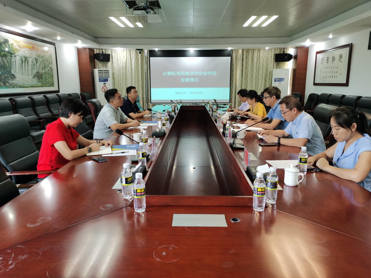 2020年9月25日下午,中共海南省委网信办副主任王建朝一行三人到pp电子游戏官网调研,围绕海南自贸港建设、进一步加强网络安全事务合作等议题在办公楼401室举行座谈会。pp电子游戏官网党委常委、副校长陈险峰,网教中心主任戴惟萌,计算机与pp电子游戏官网副院长曹春杰(主持工作),副院长程杰仁、副院长周晓谊参加座谈会。会议由陈险峰主持。