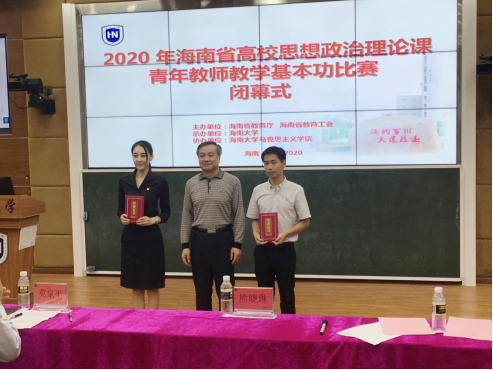 11月16日至17日,由海南省教育厅、海南省教育工会主办的2020年海南省高校思政课青年教师教学基本功比赛在pp电子游戏官网举行。省教育工会、省教育厅思政处负责人,全省21所高校的43位选手以及100多名思政课教师到场参加及观摩本次比赛。pp电子殷越老师作为pp电子游戏官网代表参赛,以总分第一名的成绩获得2020年海南省高校思政课青年教师教学基本功比赛本科组一等奖。