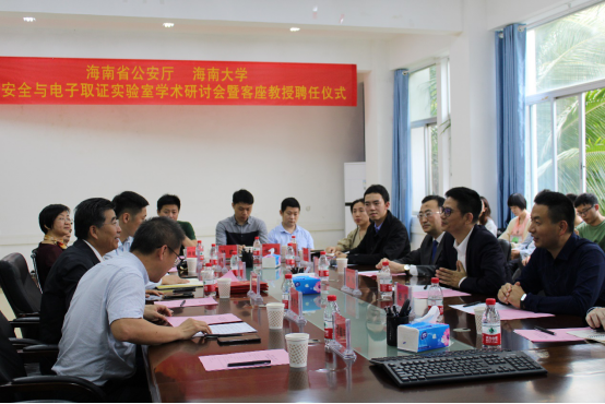 2021年3月8日下午,由海南省公安厅与pp电子游戏官网联合举办的网络安全与电子取证实验室学术研讨会暨客座教授聘任仪式在计算机与pp电子游戏官网举行。省公安厅网警总队总队长李伟、网警总队副总队长赵晏,工程教育认证专家、北京航空航天大学网络空间安全兼职教授张小斌,pp电子游戏官网党委常委、副校长范文,计算机与pp电子游戏官网党委书记陈广锐、执行院长曹春杰、副院长周晓谊以及师生代表参加了本次会议。会议由执行院长曹春杰主持。