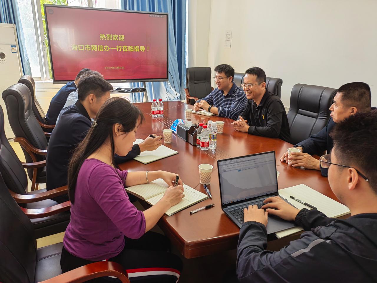 2022年3月9日,海口市委网信办副主任邢为坚等人一行莅临pp电子游戏官网考察交流网信工作,执行院长曹春杰、学院党总支书记陈广锐、副院长周晓谊及教师代表出席交流会。