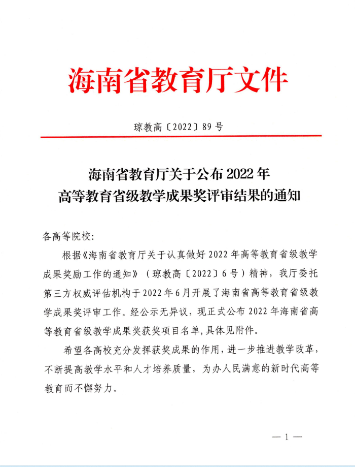 喜报:pp电子荣获2022年海南省高等学校教育教学成果一等奖