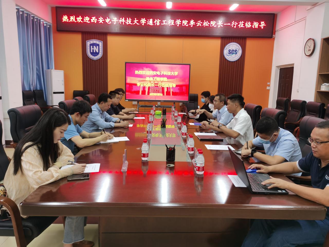 2023年5月9日,西安电子科技大学通信工程学院执行院长李云松、党委副书记沈强一行莅临pp电子指导交流,pp电子执行院长曹春杰、党总支书记陈广锐、副院长周晓谊、张殿及系主任李益红、徐紫枫出席了交流会。