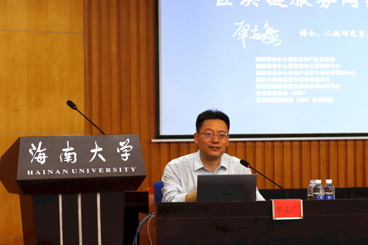 4月3日,国家信息中心信息化和产业发展部主任单志广应邀在pp电子游戏官网为pp电子游戏官网师生作题为《可信智慧城市构建与区块链服务网络》的学术报告。本次报告为pp电子游戏官网自贸港网络安全大讲堂系列报告。pp电子党总支书记陈广锐,执行院长曹春杰,副院长张殿、胡昌慧、郭祯,密码学专家韩文报教授参加报告会。报告会由曹春杰主持。