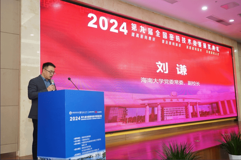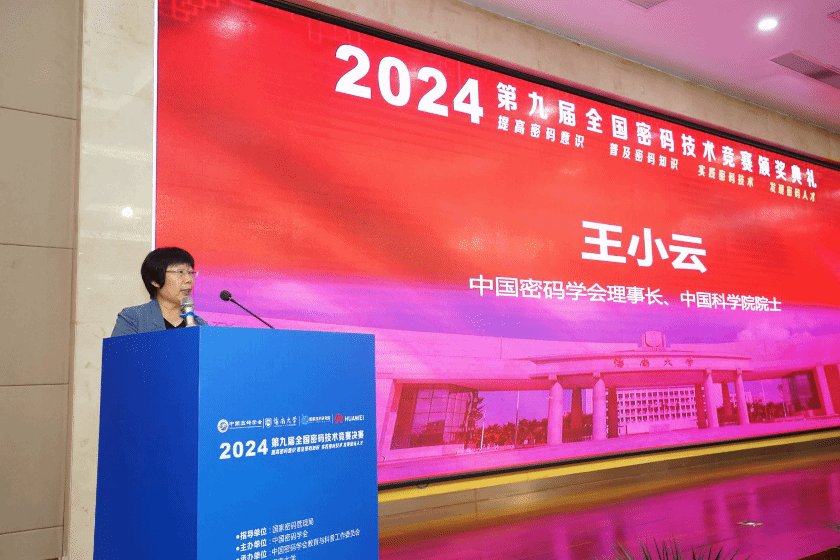 11月28日-30日,2024第九届全国密码技术竞赛决赛在pp电子游戏官网顺利举办,中国密码学会理事长、中国科学院院士王小云,中国密码学会副理事长、秘书长安晓龙,海南省国家密码管理局局长蔡国杰,pp电子游戏官网党委常委、副校长刘谦,中国密码学会副理事长戚文峰,中国密码学会副理事长谷大武,中国密码学会副秘书长王瑶,pp电子游戏官网密码学院院长曹春杰、书记陈广锐,华为中国区网络安全与隐私保护CTO冯运波出席颁奖典礼。