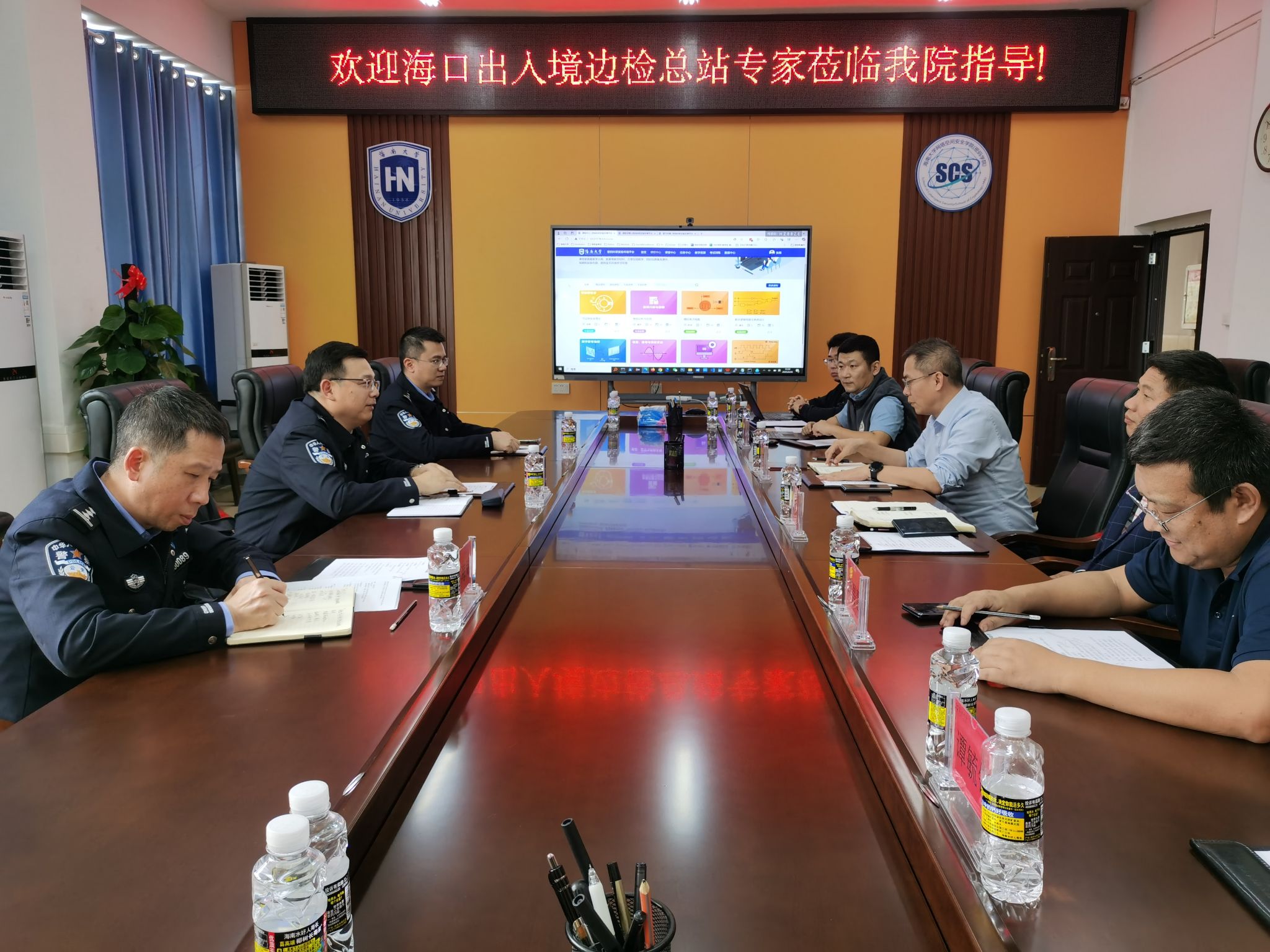 双方在交流环节展开深入讨论。学院党总支书记陈广锐强调,服务国家重大战略和自贸港建设需求是高校的使命担当,希望通过多种模式深化校警合作。双方一致表示,将以此次调研为契机,力争在跨境网络安全治理领域加强沟通合作,为服务自贸港跨境数据安全、边境网络治理等现实需求贡献力量。