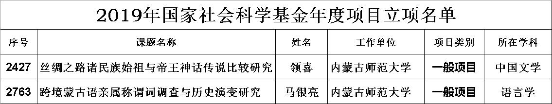 关于2019年国家社科基金年度项目和青年项目立项名单的公示