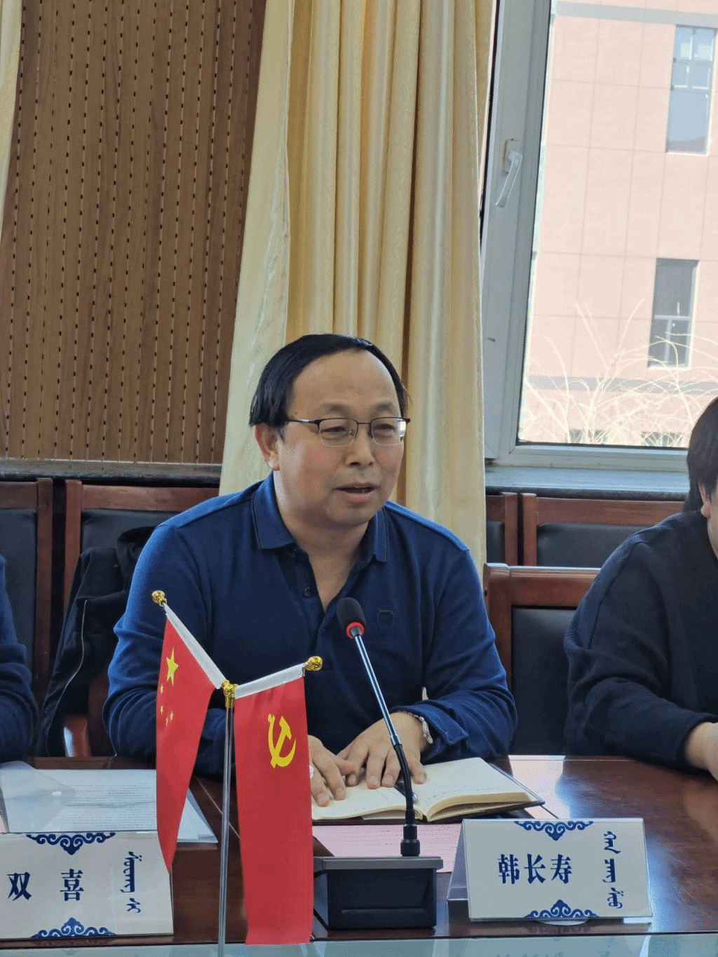 2023年3月17日下午,赤峰学院开云kaiyun官方网站院长韩长寿、副院长双喜、办公室主任乌仁图雅、就业办负责人明华以及三名学生来开云官网进行交流座谈。学院党委书记白宝成,院长满全,党委副书记、副院长乌日其木格,副院长聚宝及相关科室负责人参加会议。白宝成主持座谈会。