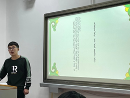 本次本科生论坛共提交了21篇学术论文,其内容丰富,涉及文学、语言学、翻译学等各领域,报告人有中国少数民族语言文学专业及翻译专业的大二至大四学生。参加本科学术论坛的学生虽然都是第一次以参赛者的身份参与,但是报告内容、报告方式上都有着可圈可点的地方。